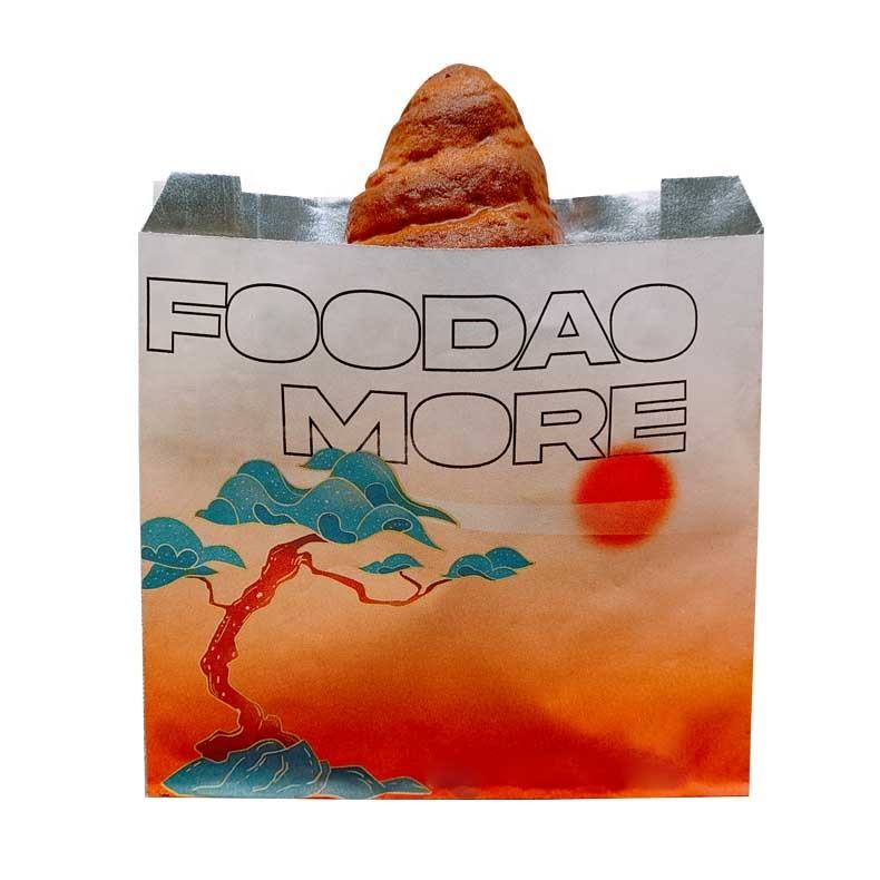 Greaseproof paper bag is made of 100% virgin wood pulp.. A protective barrier on the paper prevents grease from soaking through it. It generally is produced in sheets or rolls.Greaseproof paper is used for wrapping foods for storage, especially greasy foods such as butter, bacon or doughnuts,burgers,sandwiches etc.
